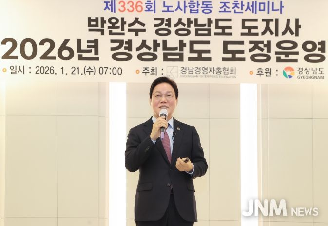 제이앤엠뉴스 | 경상남도는 21일 오전 창원 인터내셔널호텔에서 열린 ‘제336회 노사합동 조찬세미나’에서 도정 비전과 주요 정책 방향을 공유했다.