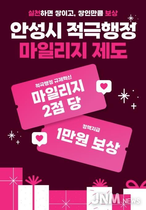 제이앤엠뉴스 | 안성시는 불합리한 규제 개선과 시민 불편 해소를 위한 적극행정 실천 보상을 위해 ‘2026년 적극행정 마일리지 제도’를 운영한다.