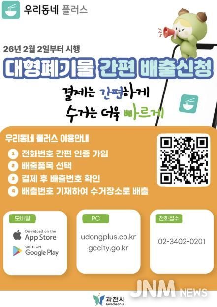 제이앤엠뉴스 | 과천시는 시민 편의를 높이기 위해 오는 2월 2일부터 대형폐기물 온라인·모바일 배출 시스템을 본격 운영한다고 밝혔다.