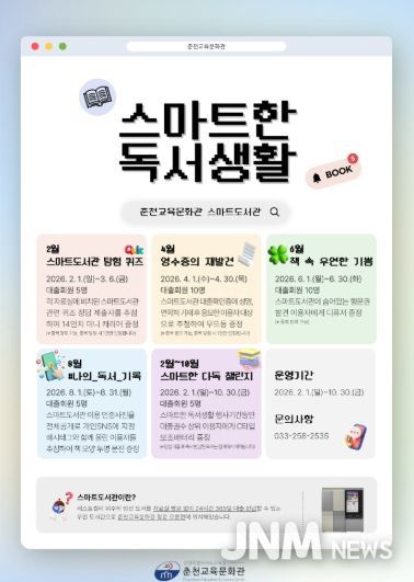 제이앤엠뉴스 | 춘천교육문화관은 2026년 2월 1일부터 10월 30일까지 스마트도서관 이용을 통해 지역 주민의 독서 접근성을 높이기 위한 ‘스마트한 독서생활’을 운영한다.