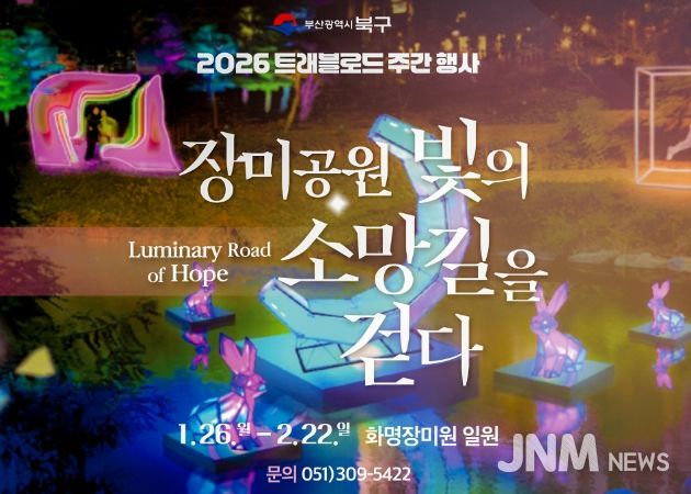 제이앤엠뉴스 | 부산 북구는 1월 26일부터 2월 22일까지 화명동 장미공원 일원에서 ‘장미공원, 빛의 소망길을 걷다–북구 트래블로드 주간 행사’를 개최한다고 밝혔다.