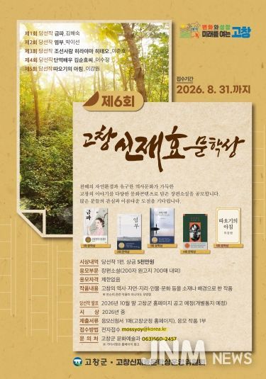 제이앤엠뉴스 | 제6회 고창신재효문학상 공모전이 오는 8월까지 접수 받는다.