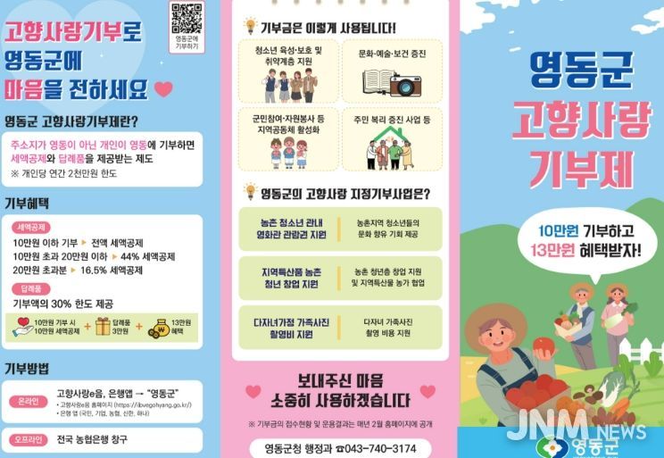 제이앤엠뉴스 | 충북 영동군의 2025년 고향사랑기부제 모금액은 약 4억 2천만 원으로 집계됐다.