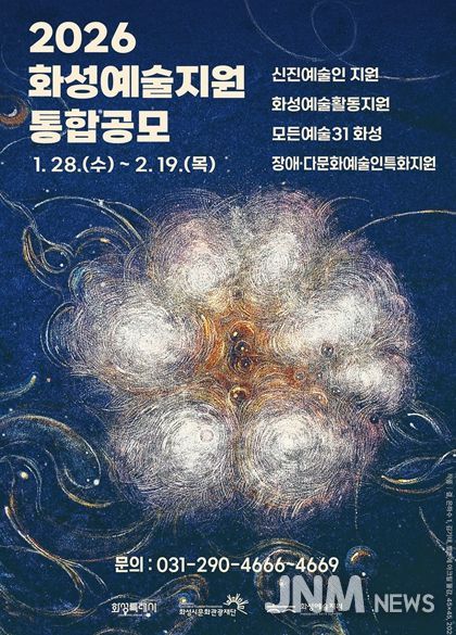 제이앤엠뉴스 | (재)화성시문화관광재단은 화성특례시 지역 예술인의 안정적인 창작 활동과 지속 가능한 예술생태계 조성을 위해 오는 1월 28일부터 '2026 화성예술지원' 통합공모를 실시한다.