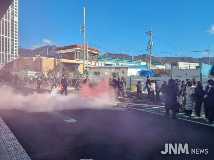 주요 교육 및 훈련 내용은 ▲피난 교육 ▲화재 상황 전파 ▲전 시설 대피 유도 ▲피난 동선 확인 ▲대피 인원 점검 ▲현장 통제 및 훈련 강평 순으로 진행됐으며, 특히 소화기 및 옥내소화전 사용 훈련을 포함한 실감형 훈련을 병행해 현장 대응 능력을 한층 강화했다.