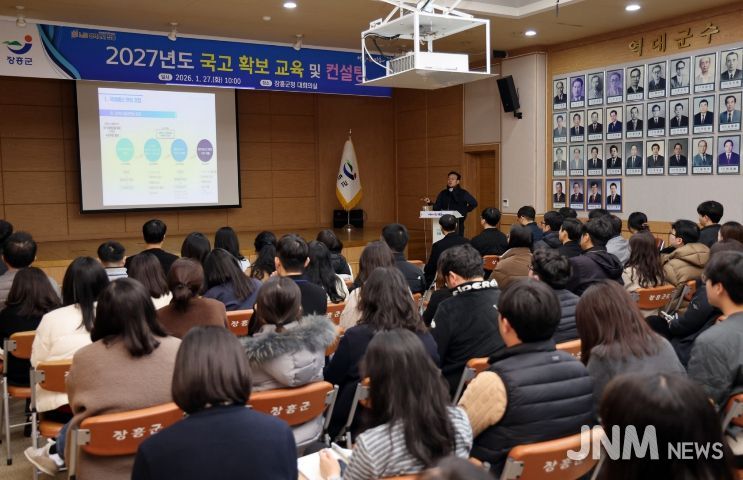 제이앤엠뉴스 | 장흥군은 27일 군청 대회의실에서 ‘국고 예산 확보 직원 역량강화 교육’을 실시했다.