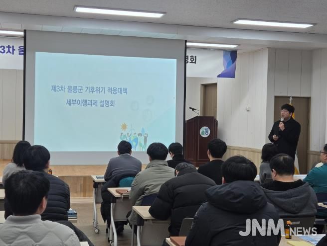 제이앤엠뉴스 | 울릉군은 2026년 1월 28일 울릉군청 제1회의실에서 '제3차 울릉군 기후위기 적응대책 세부이행과제 설명회'를 개최했다.