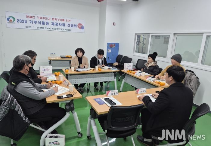 제이앤엠뉴스 | 천안시는 29일 따숨푸드뱅크에서 ‘2026년 기부식품 등 제공사업 협력 강화를 위한 간담회’를 개최했다.