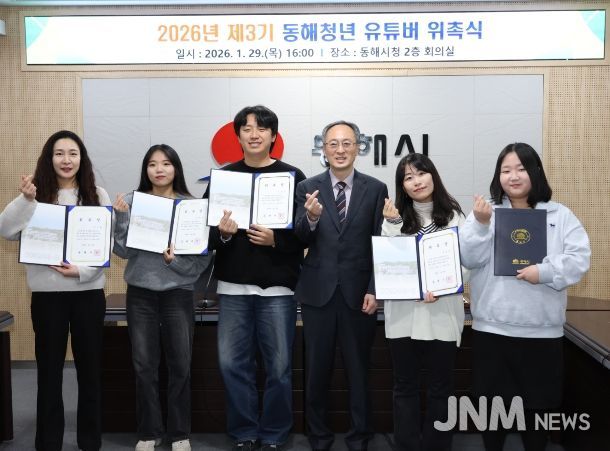 제이앤엠뉴스 | 동해시는 29일 시청에서 청년유튜버 위촉식을 열고, 선발된 청년유튜버 5명에게 위촉장을 수여했다.