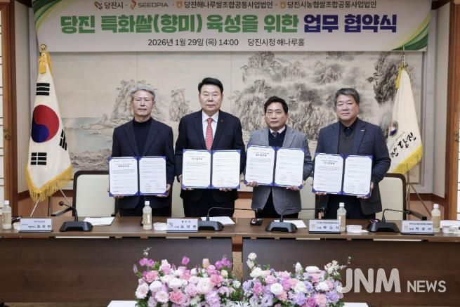 제이앤엠뉴스 | 당진시는 지난 29일 당진시청 해나루홀에서 ㈜시드피아, 통합RPC와 함께 ‘신품종 벼 실증 및 유통 활성화’를 위한 3자 간 업무협약을 체결했다고 30일 밝혔다.