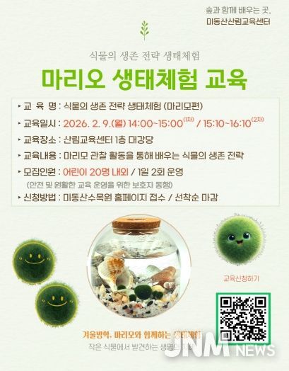 제이앤엠뉴스 | 충청북도산림환경연구소는 겨울방학을 맞은 어린이를 대상으로 오는 2월 9일 미동산수목원 내 산림교육센터에서 '식물의 생존 전략 생태체험(마리모 편)'을 운영한다.