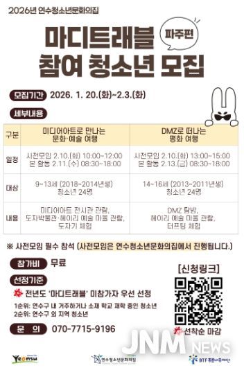 제이앤엠뉴스 | 연수청소년문화의집은 겨울방학을 맞아 청소년들의 알찬 방학 생활과 문화·예술적 소양 함양을 돕기 위해 ‘겨울방학 프로그램’을 운영한다.