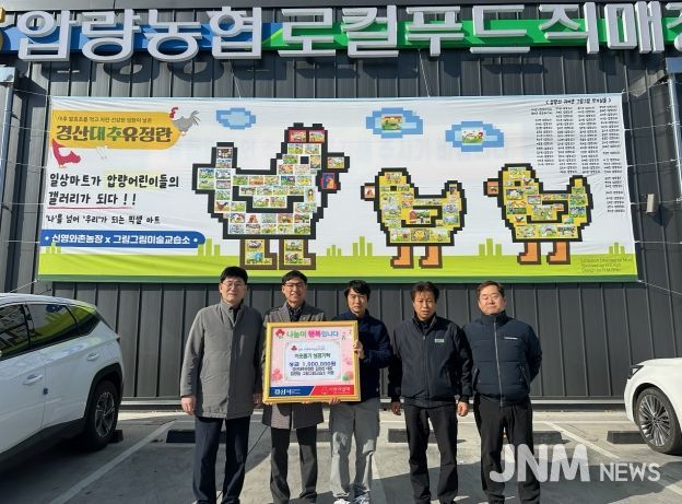 제이앤엠뉴스 | 경산대추유정란 김현섭대표는 29일 압량읍 행정복지센터에 이웃돕기성금 100만 원을 기탁했다. 기탁은 압량농협 하나로마트의 지원을 받아 압량농협 로컬푸드직매장에서 진행됐으며 기탁과 동시에 아동들의 그림과 이름을 담은 픽셀아트도 같이 전시했다.