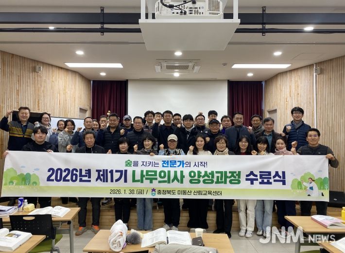 제이앤엠뉴스 | 충청북도산림환경연구소는 지난 1월 5일부터 30일까지 미동산산림교육센터에서 운영한 ‘2026년 제1기 나무의사 양성과정’을 마치고, 교육과정을 이수한 교육생 32명을 배출했다.