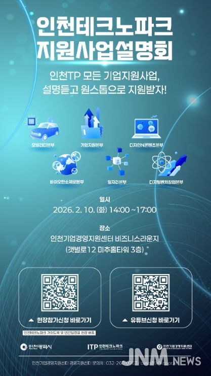 제이앤엠뉴스 | 인천테크노파크(인천TP)는 오는 2월 10일 송도 미추홀타워에서 인천 지역 중소기업을 대상으로 ‘2026 인천테크노파크 지원사업 설명회’를 개최한다고 밝혔다.
