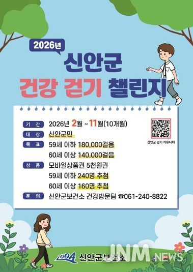 제이앤엠뉴스 | 신안군은 군민의 걷기 실천 문화 확산과 건강증진을 위해 2026년 건강 걷기 챌린지 ‘워크온’을 본격 운영한다고 밝혔다.