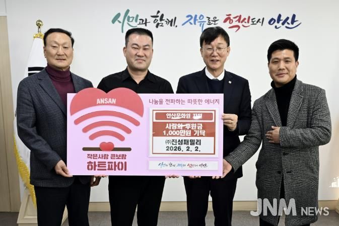 제이앤엠뉴스 | 안산시는 지난 2일 ㈜진성패밀리로부터 후원금 3,000만 원을 기탁받았다고 3일 밝혔다.