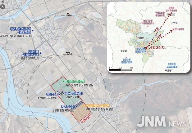 신규조성형으로 선정된 진안군은 마령면 일원에 임대형 스마트팜과 인력양성 스마트팜, 교육연구센터, 분양형 스마트팜 단지 등을 집적 조성하며, 핵심시설 구축에 국비 200억 원이 투입된다.