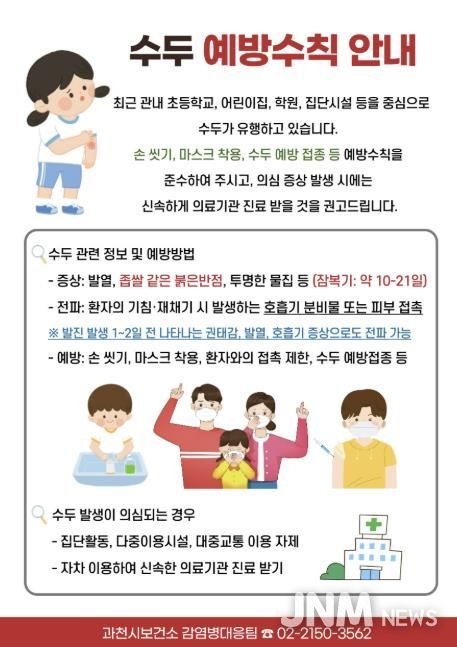 제이앤엠뉴스 | 과천시는 관내에서 초등학생을 중심으로 수두 발생이 이어지고 있다며, 방학 기간 중 학원과 가정 내 확산에 대한 각별한 주의를 당부했다.