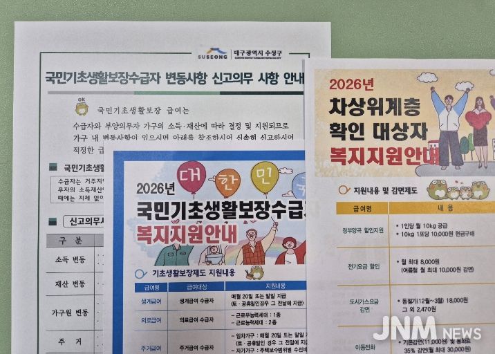 제이앤엠뉴스 | 대구 수성구는 2026년 기초생활보장제도 개선 및 기준 완화에 발맞춰 복지사각지대를 해소하고 주민 체감도를 높이기 위한 맞춤형 복지사업을 본격 추진한다고 밝혔다.