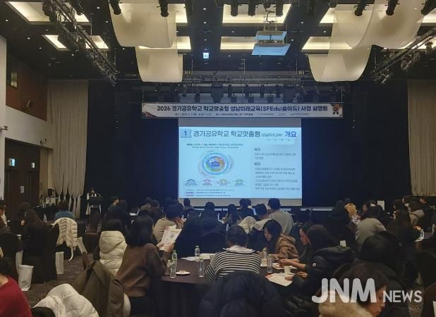 제이앤엠뉴스 | 경기도성남교육지원청은 5일 밀리토피아호텔에서 관내 초·중·고·특수학교 교원 및 지자체 관계자 등 300여 명이 참석한 가운데 ‘2026 경기공유학교 학교맞춤형 성남미래교육(숲에듀) 사업설명회’를 개최했다.