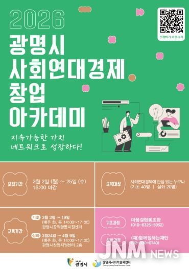 제이앤엠뉴스 | 광명시가 ‘2026년 광명시 사회연대경제 창업 아카데미’ 수강생을 오는 25일까지 모집한다.