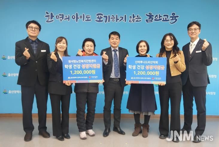 제이앤엠뉴스 | 원서영노인복지간병센터와 산마루나드리산악회가 5일 울산강북교육지원청을 방문해 취약‧위기 학생 지원을 위한 후원금 240만 원을 기탁했다.