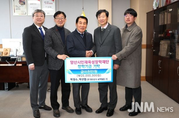 제이앤엠뉴스 | 전 양산군수 故 박필용님의 자제들이 부친의 장례식에서 받은 부조금을 지역인재 육성을 위한 장학금으로 기탁해 잔잔한 감동을 주고 있다.