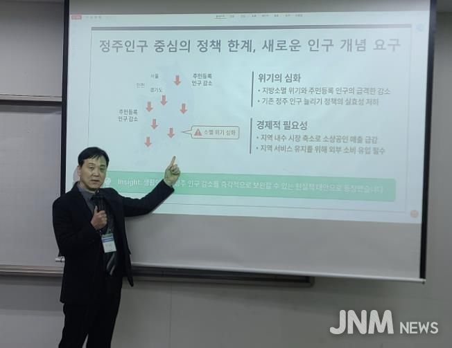 제이앤엠뉴스 | (재)고창식품산업연구원 GFI 미래정책연구센터는 지난 5일 중앙대에서 열린 ‘2026 경제학 공동학술대회’에 참가해 ‘생활인구 증가에 따른 경제적 법적 편익의 한계와 개선’을 주제로 발표했다. 주민등록 인구 중심 정책의 한계를 보완할 대안으로 ‘생활인구’의 중요성을 제기했다.