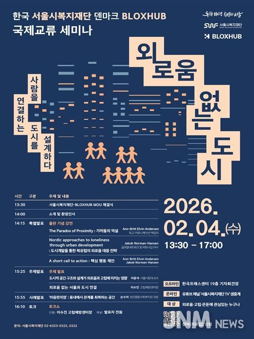 제이앤엠뉴스 | 국내 최초로 외로움을 의제 삼아 정책을 추진하고 있는 서울시와 서울시복지재단이 덴마크의 블록스허브(BLOXHUB)와 ‘외로움’을 주제로 국제 교류 세미나를 열고 업무협약을 맺었다.