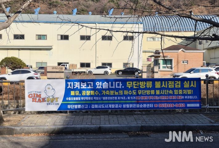 제이앤엠뉴스 | 김해시도시개발공사 생림맑은물순환센터는 폐수 무단방류로 인한 수처리 시설 운영 차질을 예방하고, 사업장들의 환경 인식을 높이기 위해 지난 4일 폐수 무단방류 방지 현수막 설치를 완료했다고 밝혔다.