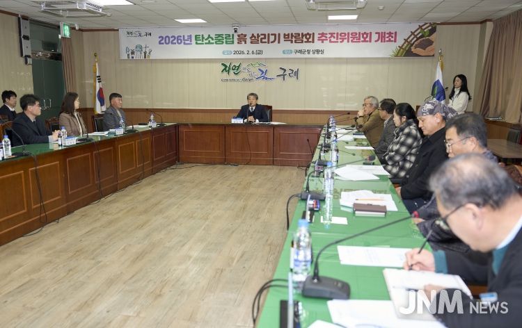 제이앤엠뉴스 | 전남 구례군은 2월 6일 구례군청 상황실에서 탄소중립 실천과 지속 가능한 농업환경 조성을 위한‘2026 탄소중립 흙 살리기 박람회’의 성공적인 개최를 위해 박람회 추진위원회가 첫 회의를 열었다.