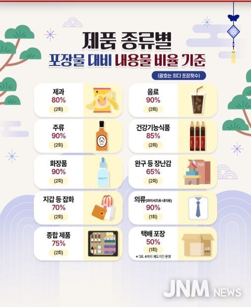 기후에너지환경부와 지방정부는 1월 19일부터 2월 13일까지 명절 선물세트 등 과대포장 우려제품에 대한 포장 규정 준수 여부를 집중 점검하고 있다.