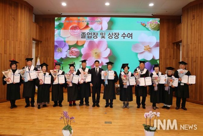 이날 졸업식에는 졸업생과 가족, 내빈 등 200여 명이 참석한 가운데, 학산풍물동아리의 식전 공연을 시작으로 재학생 시니어 모델들의 축하 워킹, 졸업장 및 상장 수여, 경과보고 등이 차례로 진행되며 졸업의 의미를 함께 나눴다.