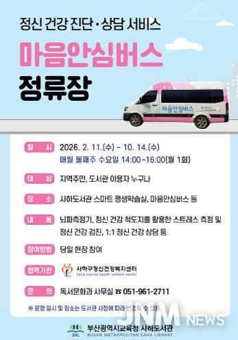 제이앤엠뉴스 | 부산광역시립사하도서관은 오는 2월부터 10월까지 매월 둘째 주 수요일마다 도서관 스마트 평생학습실과 마을안심버스에서 지역주민을 대상으로 ‘마을안심버스 정류장’을 운영한다.