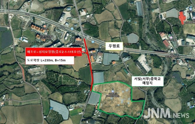 제이앤엠뉴스 | 제주시는 서빛중학교 개교 예정에 맞춰 학생들의 안전한 보행환경을 조성하기 위해 ‘애조로~성지요양원(중로2-1-115호선) 확장사업’을 본격 추진한다.