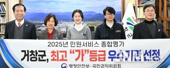 제이앤엠뉴스 | 거창군은 국민권익위원회·행정안전부 공동 주관한 ‘2025년 민원 서비스 종합평가’에서 최고 등급인 ‘가등급’에 선정돼 전국 최고 수준의 민원 서비스를 인정받았다.
