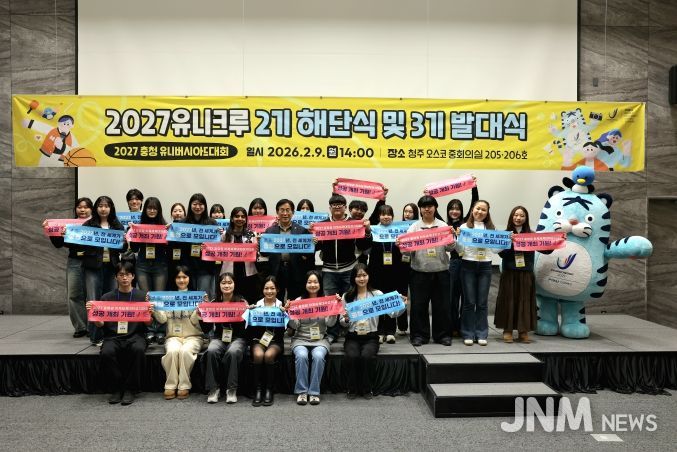제이앤엠뉴스 | 2027 충청 유니버시아드대회 조직위원회는 9일 청주 오스코(OSCO)에서 대학생 서포터즈 ‘2027유니크루’ 제2기 해단식 및 제3기 발대식을 개최했다고 밝혔다.