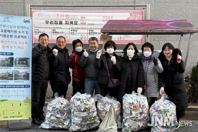 제이앤엠뉴스 | 수원시 장안구 연무동은 지난 6일, 반사모(반딧불이 연무시장 사랑 소모임)와 함께 연무시장 일원에서 유용생활폐자원을 수거했다.