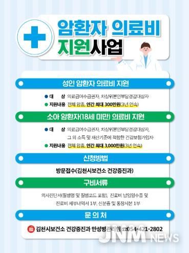 제이앤엠뉴스 | 김천시는 암과 희귀질환으로 투병 중인 저소득층 시민들을 위해 '암환자·희귀질환자 의료비 지원사업'을 연중 상시 운영하며 시민 건강 증진에 앞장서고 있다.