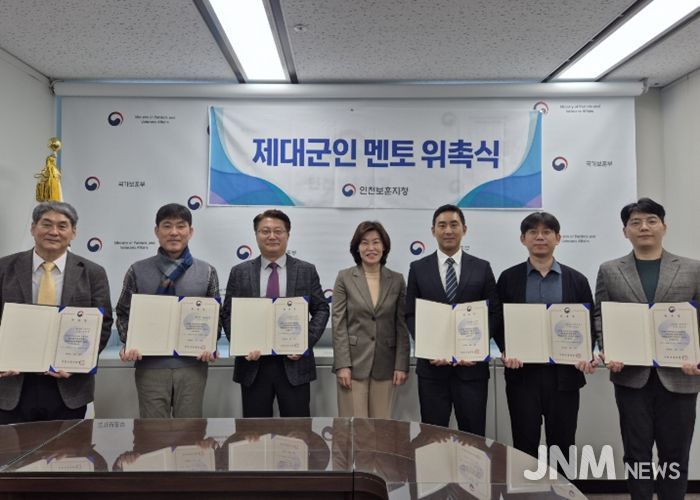 제이앤엠뉴스 | 국가보훈부 인천보훈지청 제대군인지원센터는 2월 10일 정부인천지방합동청사에서 먼저 사회에 진출하여 성공한 제대군인을 분야별로 멘토로 선정하는 “2026년 제대군인 멘토 위촉식 및 간담회”를 진행했다.