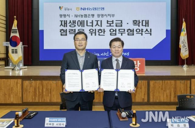 시는 13일 시청 대회의실에서 NH농협은행 광명시지부와 ‘재생에너지 보급·확대 및 사회공헌 연계 업무협약’을 체결했다.