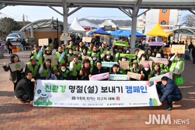 제이앤엠뉴스 | 울산 울주군이 13일 남창 옹기종기시장에서 그린리더울주군협의회(회장 박옥덕)와 함께 친환경 명절(설) 보내기 캠페인을 실시했다.