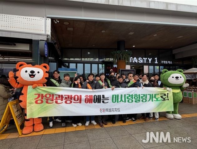 제이앤엠뉴스 | 강원특별자치도는 강원관광재단, 미시령동서관통도로(주)와 함께 설 명절을 맞아 ‘강원 관광의 해(2025~2026)’와 미시령 힐링가도 홍보를 위해 가평휴게소에서 캠페인을 실시했다.