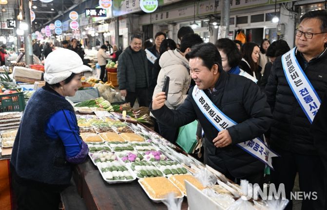 제이앤엠뉴스 | 박정현 부여군수가 민족 최대 명절인 설을 앞두고 15일 지역 전통시장을 찾아 민생경제 현장을 점검하고 상인들을 격려했다.