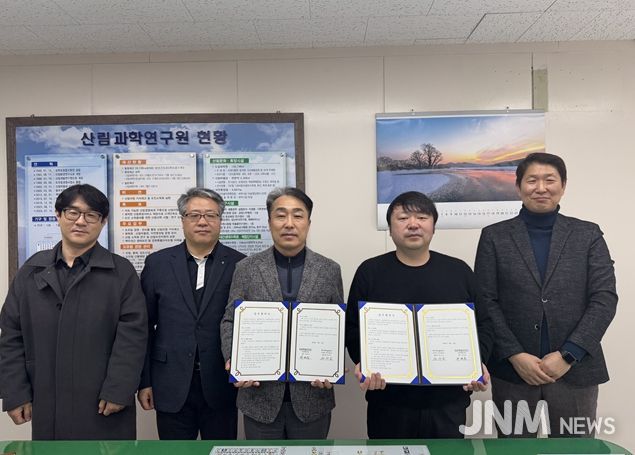 제이앤엠뉴스 | 강원특별자치도 산림과학연구원은은 도내 산림바이오 유망 기업인 (주)닥터오레고닌과 2월 13일, ‘강원 산림자원 유래 고기능성 바이오 소재 개발 및 글로벌 시장 개척을 위한 공동연구 업무협약(MOU)’을 체결했다고 밝혔다.