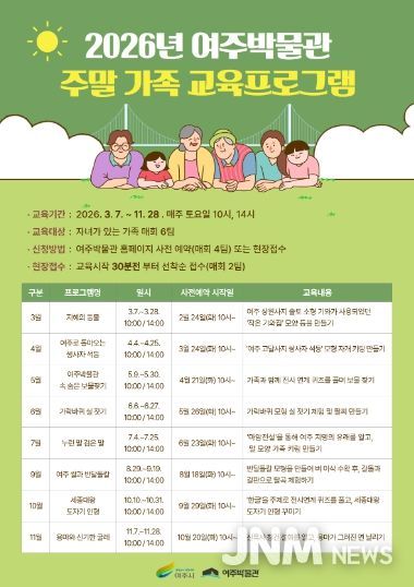 제이앤엠뉴스 | 여주시 여주박물관은 오는 3월 7일부터 11월 28일까지 매주 토요일, 가족 단위 관람객을 대상으로 한 ‘2026년 주말 가족 대상 교육프로그램’을 운영한다.