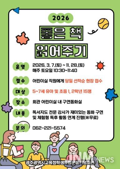제이앤엠뉴스 | 광주시교육청학생독립운동기념회관은 오는 3~11월 유아 및 초등학교 저학년 학생을 대상으로 독서 프로그램 ‘좋은 책 읽어주기’를 운영한다.