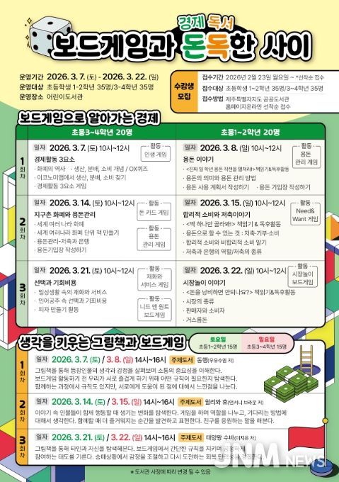 이번 프로그램은 3월 7일부터 22일까지 어린이도서관에서 ▲보드게임으로 알아가는 경제 ▲생각을 키우는 그림책과 보드게임 등 2개 과정으로 진행된다.