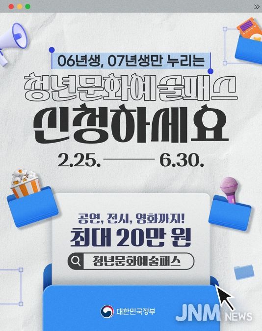 제이앤엠뉴스 | 06년생, 07년생만 누리는 '청년문화예술패스' 신청하세요.